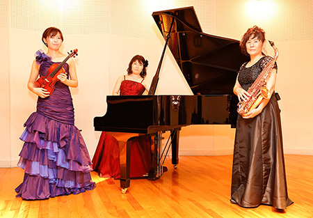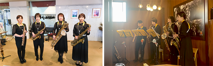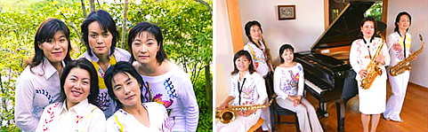 サクソフォンクヮルテット、ピアノの女性5人のユニット。
